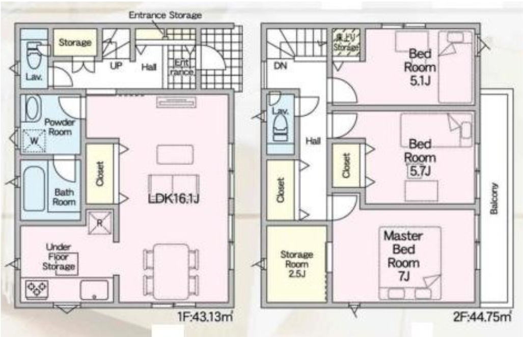 | 間取内容 | LDK16.1畳 1階 1室 洋室7.0畳 2階 1室 洋室5.7畳 2階 1室 洋室5.1畳 2階 1室 S2.5畳 2階 1室 |